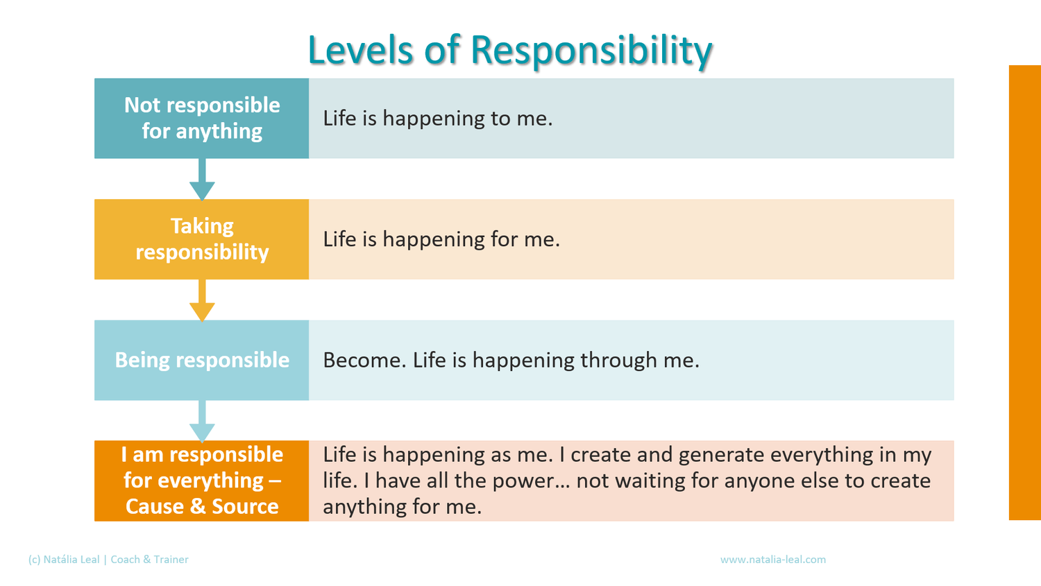 Tina Brigley, a coach with whom I’ve recently worked, reminded me during a session that you can’t have the life you want and dream about unless you truly take responsibility for it. Once that starts, you may feel like you are going through different steps, in which now it feels like life is happening for you, then through you (as you become truly responsible).